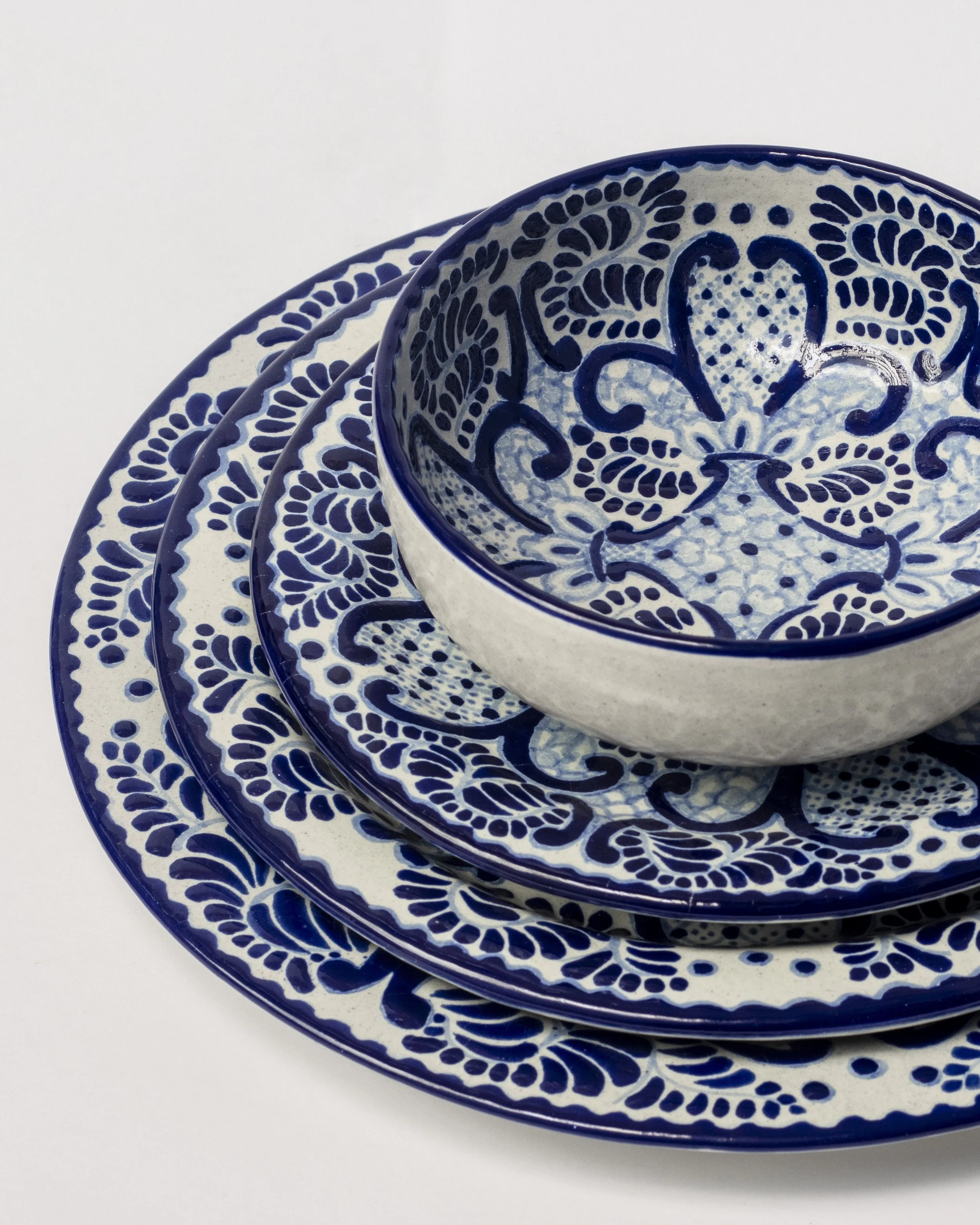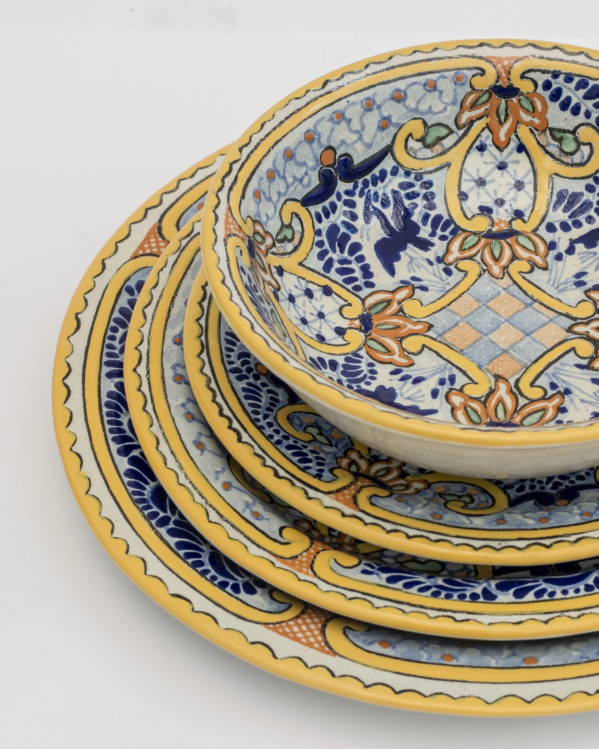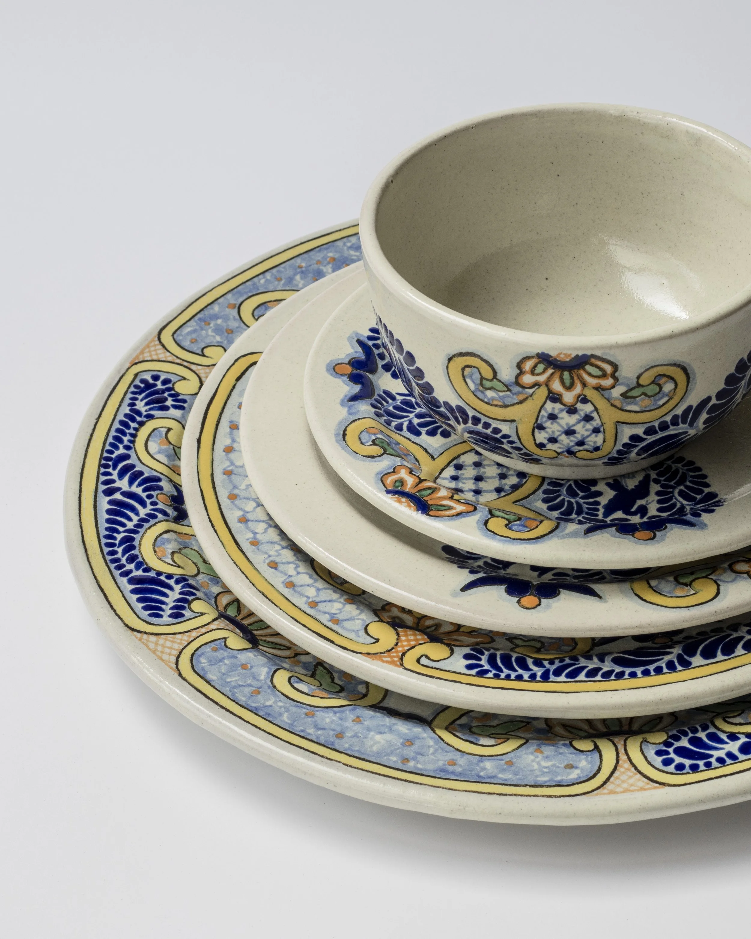 Siempre imitada y jamás igualada, esta colección de diseño de línea Uriarte Talavera tiene diseños tradicionales rinden homenaje a la rica herencia artesanal mexicana y conforman el legado creativo de más de dos siglos de historia del taller. Cada pieza está cuidadosamente elaborada a mano, con patrones clásicos como flores, motivos geométricos y colores vibrantes que han sido transmitidos de generación en generación. Esta colección resalta la belleza de la cerámica talavera en su forma más auténtica, perfecta para quienes buscan darle un toque de historia y elegancia a su mesa. ¡Una pieza única de tradición y arte que llevará tu comedor a un nuevo nivel de sofisticación!